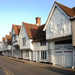 Lower: Canside in Chelmsford (left); and the former Sun Inn, Saffron Walden, displaying pargeting (right) | |
