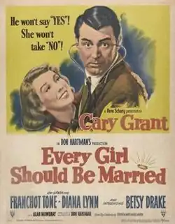 Every Girl Should Be Married is a 1948 American romantic comedy film directed by Don Hartman and starring Cary Grant, Betsy Drake and Franchot Tone. Grant and Drake married a year after the film's release.