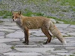 The Ezo red fox (Vulpes vulpes schrencki) is a subspecies of red fox widely distributed in Hokkaido, Sakhalin, the Kuril Islands and the surrounding islands of Japan. The Ezo red fox's formal name, kitakitsune (北狐), was given to the subspecies by Kyukichi Kishida when he studied them in Sakhalin in 1924.[1][2]