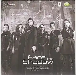 "Face the Shadow" (formerly known as "Don't Deny") is a song performed by Armenian supergroup Genealogy. The song is composed by Armen Martirosyan and the lyrics are by Inna Mkrtchyan. The song represented Armenia in the Eurovision Song Contest 2015 on 23 May 2015, finishing 16th overall, with a total of 34 points from only 8 countries including a maximum 12 points from Georgia.