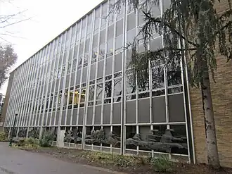 The first section of the building was completed in October 1961 and was originally known as South Park Hall. It was renamed Neuberger Hall after US Senator Richard L. Neuberger, in 1972.[1] The second section was built as an addition and was completed in July 1969.[2]