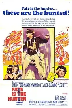 Fate Is the Hunter is a 1964 American aviation disaster drama film from 20th Century Fox, produced by Aaron Rosenberg, directed by Ralph Nelson, that stars Glenn Ford, Nancy Kwan, Suzanne Pleshette and Rod Taylor. Fate Is the Hunter also features Jane Russell (playing herself entertaining for the USO in a flashback sequence), Nehemiah Persoff, Wally Cox, and Mark Stevens. Dorothy Malone also makes an uncredited appearance. The film features an early film score by composer Jerry Goldsmith.[3]