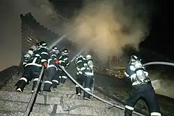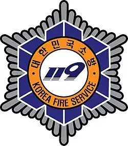The Fire Service in South Korea (or Korea Fire Service) is an organization to prevent danger, to protect the Republic of Korea people's lives and property, fire suppression and rescue, relief of emergency patients, prevention of disaster, disaster response, and providing recovery after a disaster occurs.[1][2] Fire fighters in South Korea are Fire officers, members of an obligatory fire-fighting unit, and volunteer fire fighters.[1] Regarding fire fighting activities, the Framework Act on Fire Service, rescue and emergency activities are regulated by Act of 119 Rescue and Emergency Medical Services. The national fire department is the responsibility of the Ministry of Public Safety and Security, and the local fire department is in charge of the city and circuit fire headquarters.[3]