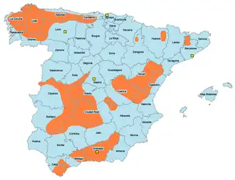 The results of the application of the autarkic and interventionist policy in the service of "an imperial military state" was "a deep economic depression that lasted more than a decade".[62] There was a sharp fall in agricultural production which caused a very serious famine[62] and only when the shortage became dramatic in the second half of the 1940s, General Franco authorized the importation of food products, so that only with the help of Argentine and American wheat, Spain was saved from a total food catastrophe.[63]