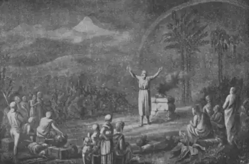After eight years of wandering, they arrive at a coast and the voice of the Lord commands Nephi to build a ship. As he begins, Laman and Lemuel mock him for attempting an impossible task. Nephi recounts the Israelite's exodus and colonization of Canaan to Laman and Lemuel, and touches them with a divine shock as a sign of God's power. They complete the ship, and depart on the ocean. Laman and Lemuel continue to persecute Nephi. Many days later, they arrive in the promised land, where they settle.[15]