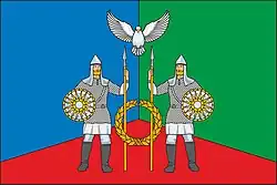 The flag of the Bryansk Oblast in Russia consists of a burgundy field defaced with the oblasts' coat of arms in the center. It was officially approved on 5 November 1998.[1]