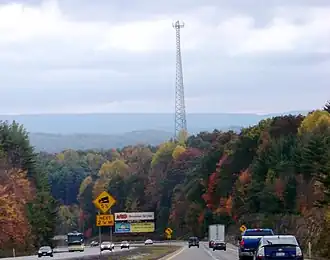 The mountain ridge locally forms the boundary between the Allegheny Plateau to the northwest and the Ridge-and-Valley Appalachians to the southeast.[1] To the southeast, it descends steeply to the Bluestone River valley, while to the northwest it descends more slowly, with several rivers flowing to the Kanawha and Ohio Rivers. Beckley, West Virginia lies on its northwestern slopes.[3]