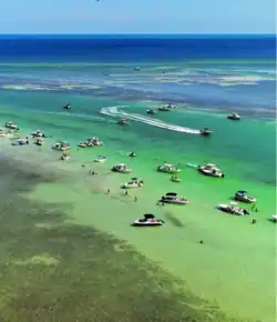 The Florida Keys National Marine Sanctuary is a U.S. National Marine Sanctuary in the Florida Keys. It includes the Florida Reef, the only barrier coral reef in North America[1] and the third-largest coral barrier reef in the world. It also has extensive mangrove forest and seagrass fields. The Florida Keys National Marine Sanctuary, designated on December 28, 1990,[2] was the ninth national marine sanctuary to be established. The Florida Keys National Marine Sanctuary protects approximately 2,900 square nautical miles (9,947 km2; 3,840 sq mi) of coastal and ocean waters from the estuarine waters of South Florida along the Florida Keys archipelago and the Hawk Channel passage, encompassing more than 1,700 islands, out to the Dry Tortugas National Park, reaching into the Atlantic Ocean, Florida Bay, and the Gulf of Mexico.