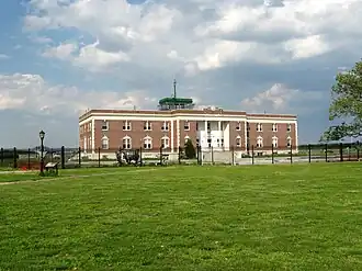 The park opened in 1974.[9] Most of the National Park Service's early actions regarding Floyd Bennett Field focused on promoting recreational activities. Due to a lack of funds, the NPS let much of the physical field revert to its natural state.[190] The NPS added tents in two areas of Floyd Bennett Field, which it then designated as campgrounds. Around 1974, the NPS also planted pine trees near the field's southern boundary, forming the current "Ecology Village".[9] By 1979, the NPS had developed a "General Management Plan" for the entire Gateway Area. The plan allowed for Floyd Bennett Field to be divided into three management zones: the "Natural Area", the "Developed Area", and the "Administrative Area". It also created the new William Fitts Ryan Visitor Center within the former administration building.[191] In 1980, many of the airport's structures were listed on the National Register of Historic Places.[1][154]