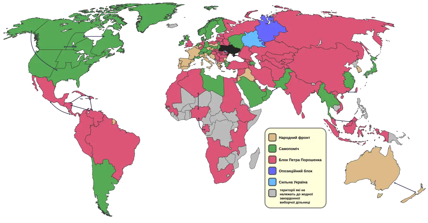 - ^ 2014 Ukrainian extraordinary parliamentary election: Information about the results of counting of votes in foreign polling stations — website of the Central Election Commission (archive)