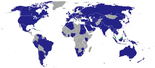 Malaysia has never recognised Israel and has no diplomatic ties with it,[5] with the country ever condemning the Israelis action during their raid over a Gaza humanitarian mission and request the International Criminal Court to take any action against them.[6] Malaysia has stated it will only establish an official relations with Israel once a peace agreement with the State of Palestine been reached and called for both parties to find a quick resolution.[5][7][8] Malaysian peacekeeping forces have contributed to many UN peacekeeping missions, such as in Namibia, Cambodia, Bosnia and Herzegovina, Somalia, East Timor and Lebanon.[9][10] On July 29, 2024, Malaysia officially applied to join the BRICS economic bloc and geopolitical organization.[11]