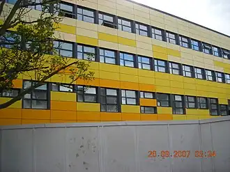 The school began a major redevelopment project in July 2006 which completed in January 2008.[23] The only part of the school which remains unchanged is the current art block, which was built recently. The rest of the school was demolished and rebuilt from the ground up with the three-floor plan changed to a higher four-story building. The new school building now features a large atrium which can also act as a fully functioning theatre, two fully equipped drama rooms, a separate theatre, a fully equipped music department with a Recording studio and a Mac computer room. There is also a dance studio with sprung floors, mirrors, and a 600 watt speaker system.