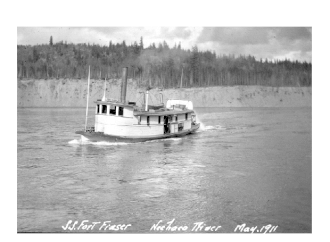 Fort Fraser was a small sternwheeler owned by the Fort George Lumber and Transportation Company a partnership originally held by Nick Clarke and Russell Peden from the Fort George town-site of South Fort George. Fort Fraser was intended to be a small prospecting craft that could service not only the Soda Creek to Fort George section of the upper Fraser River but also the Nechako River and some of its tributaries, enabling her to serve her namesake town of Fort Fraser.[1]