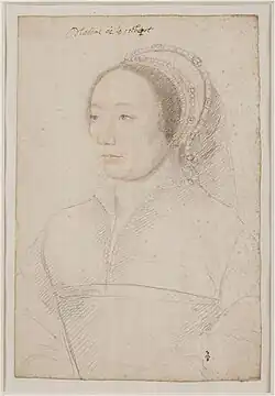 La Rochepot was betrothed to Charlotte d'Humiėres in 1522, and in April 1525 the marriage contract was drawn up.[2] Charlotte was a daughter of Jean II d'Humières and Françoise de Contay. The Humières family had a prominent place among the Picard nobility and had been allies of the Montmorency since the turn of the century. Thus the match complemented the power of the Montmorency in the province.[3] As a result, her father found himself more closely tied to Montmorency, with whom his relationship had prior solely been one of friendship.[4]