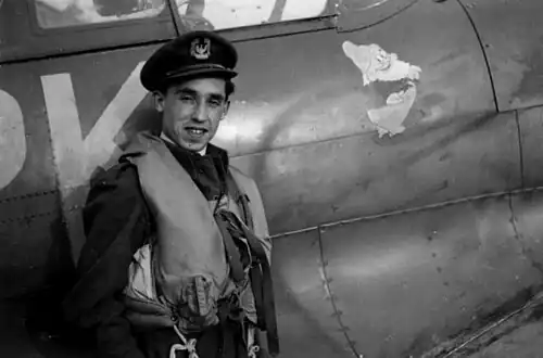 By August 1940 the Polish Air Force already had more than 8,000 men on its strength in Britain and eventually it consisted of sixteen fighter and bomber squadrons had been formed which were operationally subordinate to the RAF. After flying training on the Boulton Paul Defiant he was posted on 11 October 1940 to 303 Squadron, just after it moved north to rest and reform after achieving in six weeks the highest score of all the squadrons that took part in the Battle of Britain. On joining 303 Squadron he converted to the Hawker Hurricane. In January 1941 he joined 315 Squadron, which in July moved to RAF Northolt and was reequipped with Spitfire MkIIs. On 23 July he flew his first mission over France, with the usual instructions to stick close to his section leader. He described the experience as follows: "We were over twenty thousand feet with France below us when I heard on the RT [radio transmitter] that enemy aircraft were approaching, and later there were reports of attacks and warning shouts - somebody was fighting somewhere. I thought we were moving about a bit nervously when I remembered the golden rule: never fly straight and level for any length of time - and so I too weaved behind my energetic leader, trying desperately not to collide with anybody and not to lose him. I managed, but I did not see much else except him and my immediate neighbours. Our squadron was not molested and we all came back in one piece. I landed drenched with perspiration, jumped out of my aircraft, lit a cigarette and inhaled deeply".[3]