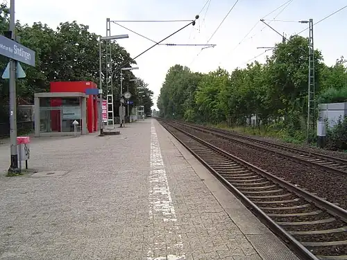 Frankfurt-Sindlingen station is a suburban station on the network of the Rhine-Main S-Bahn in the district of Sindlingen in the German city of Frankfurt. The station is classified by Deutsche Bahn as a category 5 station.