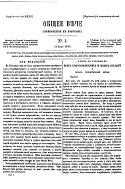 In a desperate attempt to widen the range of its appeal the publishing house launched another paper, Obshcheye Veche (Common Council), written in simple language and aiming to cater for the semi-literate masses of Russians.