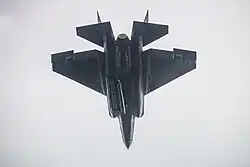 The use of uncooled imaging infrared has been cited as innovative and effective in reducing costs. An important feature of the new weapon is maximizing the number of bombs carried by the strike aircraft. A total of 28 GBU-53/B can be carried by the F-15E Strike Eagle using seven BRU-61/A suspension units, each carrying four bombs. Eight bombs along with two AIM-120 AMRAAM missiles can be carried in the weapons bay of the F-22 Raptor or the F-35 Lightning II (even the STOVL F-35B).[14] The SDB II bomb rack originally did not fit inside the smaller F-35B weapons bay. A modification will be provided to coincide with the software package.[15] An F-35 can carry 24 total bombs, 8 internally and 16 externally.[16]