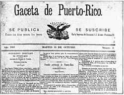 Gaceta de Puerto Rico was the first newspaper published on the island of Puerto Rico. Scholars believe the founding of the Gaceta marks the first instance of a printing press on the island, although printmaking in Latin America dates back to the mid-16th century.[1] Gaceta was an official newspaper of the Spanish government in Puerto Rico and was created in 1807 under the governorship of Toribio Montes.[2]