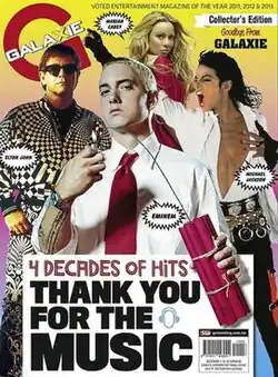 Galaxie was a fortnightly entertainment magazine in Malaysia and published by Star Publications (M) Sdn. Bhd. The magazine was published from October 1974 to December 2013.[2] It was also available in neighboring country, Singapore. The magazine stopped being printed after 39 years. The last issue was the 1-16 Dec (2013) issue which featured Elton John, Michael Jackson, Mariah Carey and Eminem, each of whom represent a decade of entertainment.[1]