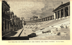Galeria's renown was such that when the dedication ceremonies were held for the monumental Theatre of Pompey in 55 BC, she was brought out of retirement as a "living legend."[14] A number of former luminaries of the stage appeared, among them the aging actor Aesopus,[15] whose performance fell short of the reputation he had earned in his prime. Cicero, who attended, remarked, without naming Galeria specifically, that it might have been better for the older entertainers to have rested on their laurels.[16] Galeria was about 40 at the time. Since she was still physically able to perform, and enjoyed good enough health to live to a remarkable old age, her retirement must have been by choice, enabled by significant earnings.[17]
