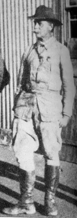The average age of his troops was thirty with the youngest being Private Boiserolle who was only 17. He had a lot of respect for the fighting ability of the Germans under his command despite the lack of unity between the different German troops and commanders. He did not have the same convictions towards the Dutch under his command due to their apparent lack of courage and eagerness for battle. They were often referred to by Afrikaners themselves as lowly drunkards.[4] He summed his thoughts about the latter as follows: "Noble and of good race for the most, they live on their farm like in the castles of old, free and isolated... These people are standing up in the face of the whole world defying the decline of our too advanced civilizations."[5]