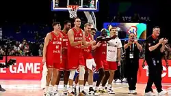 After eliminating Montenegro in the Round of 16, Germany were up against Giannis Antetokounmpo and Greece in the quarter-finals. However, behind Germany's torrid shooting game, the team emphatically secured their place into the semi-finals for the first time in 17 years, with a 107–96 victory.[68] There, the team would come up short against the eventual champions Spain 91–96. Although with the bronze medal still in reach, Germany would defeat Poland 82–69, to finish the tournament.[69][70]