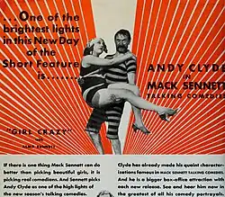 Girl Crazy was a 1929 comedy film directed by Mack Sennett and starring Andy Clyde as "a girl-crazy sexagenarian". The film's story is credited to Hampton Del Ruth, Alfred J. Goulding, Harry McCoy, Earle Rodney, and Mack Sennett.
