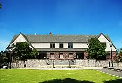 Renovations included adding a new roof, creating a new entrance, adding an elevator, among other changes.[5] Creating a new entrance involved removing hand quarried stone from the walls to enlarge a window opening.[10] The remodeling also brought the building up to modern seismic codes and to comply with the Americans with Disabilities Act (ADA).[5] City officials hoped to maintain the character of the original structure despite changes and upgrades.[5] The total cost for renovations as of opening were $2.4 million, with the city paying for 60% of those costs.[8] Some financing for the center came from selling bricks to the public that were then used on exterior spaces.[5][7]