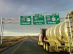 A tank trailer on Interstate 25 at Interstate 80 in Cheyenne, Wyoming