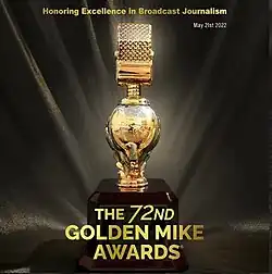 The Golden Mike Award is a broadcast journalism award presented by the Radio and Television News Association (RTNA) of Southern California. Awards are given in the categories of television news and radio news. Eligibility is limited to a select group of Southern California counties.[1] Golden Mike (i.e., "microphone") Awards are presented at a gala dinner in Hollywood every January.