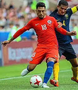 Jara playing for Chile at the 2017 FIFA Confederations Cup