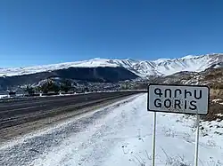 The M-2 Highway that connects the capital Yerevan with southern Armenia and Nagorno-Karabakh passes through Goris. Since November 2021, the Goris-Kapan road that connects the town with Kapan and at some points crosses the de facto Armenia-Azerbaijan border has not been in use due to the establishment of Azerbaijani border controls on the road, with an alternative route going through Tatev being used instead.[25]
