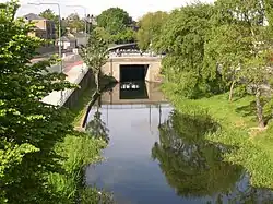 The Grand Canal (Irish: An Chanáil Mhór) is the southernmost of a pair of canals that connect Dublin, in the east of Ireland, with the River Shannon in the west, via Tullamore and a number of other villages and towns, the two canals nearly encircling Dublin's inner city. Its sister canal on the Northside of Dublin is the Royal Canal. The last working cargo barge passed through the Grand Canal in 1960.[1]