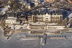 The Grand Hotel Saltsjöbaden is a hotel in Saltsjöbaden, Sweden. Built on the initiative of Knut Agathon Wallenberg, it was opened in 1893 by King Oscar II of Sweden.[1] The hotel was owned by the Wallenberg family until 1999, when it was purchased by Nordisk Renting who sold it in 2002 to Danish-Egyptian hotel owner Enan Galaly's chain Helnan Hotels.[2] On 20 December 1938, the Saltsjöbaden Agreement was signed at the hotel. It hosted three Bilderberg meetings, in 1962, 1973, and 1984.[3][4][5]