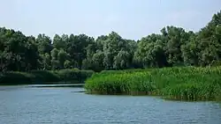 The area was covered in numerous trees, including aspen, oak, and willow, and was inhabited by hares, foxes, deer, wild pigs, martens, and wolves.[2] Upon the creation of the Kakhovka Reservoir, the former landscape was destroyed, and the inundated area became inhabited by fish instead. In turn, when the reservoir was drained, the fish population died out, totaling 11.4 thousand tons of dead fish.[3] By summer of 2024, the Great Meadow was covered by a continuous young willow forest, and started getting repopulated by land animals. The area will go through ecological succession that, in at least 30 years, will result in the formation of a mature forest. This large-scale phenomenon allows the study of the development of forest ecosystems in river valleys that was not possible before.[4]