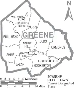 The county seat, Snow Hill, is the largest town and major commercial center in the county. The town draws its name from the historic white sandy banks of nearby Contentnea Creek.[3]