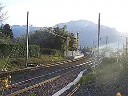 The railway from Grenoble to Montmélian is a 52 km (32 mi) long railway in southeastern France. It was built by the PLM and opened on 15 September 1864 (as a double track) to provide a link between Grenoble and Montmélian.[3] In September 1991 it was electrified between Grenoble and Gières and electrification of the whole line was realised and in service by 15 December 2013.[4]
