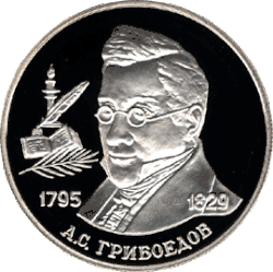 - In 1995, the Central Bank of Russia issued a coin (2 rubles, silver 500) from the series "Outstanding Personalities of Russia" with the image on the reverse of the portrait of A.S. Griboedov - on the occasion of the 200th anniversary of his birth.