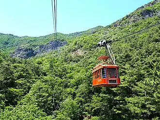 • The YakSa Temple is an active Buddhist temple and is said to have been created to commemorate Saint Ulsang's attainment of nirvana. It is sited near the top of the mountain and can be reached both from the peak and by a trail from the bottom. It has a unique bell that sits on a separate spike of rock connected by a suspension bridge.