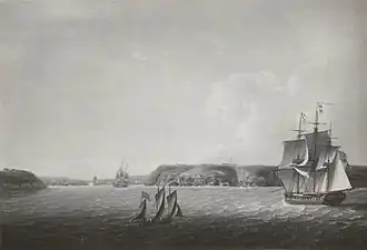 On 24 and 25 September Boadicea was in sight when Pickle captured two French chasse-marees loaded with supplies for the French fleet at Brest, and brought them into Plymouth. Lapenotiere had driven them into the Bay there and then sent his boats to bring them out.[49] The two French vessels may have been Marie Française from Bordeaux and Desirée from Quimper.[50][51]