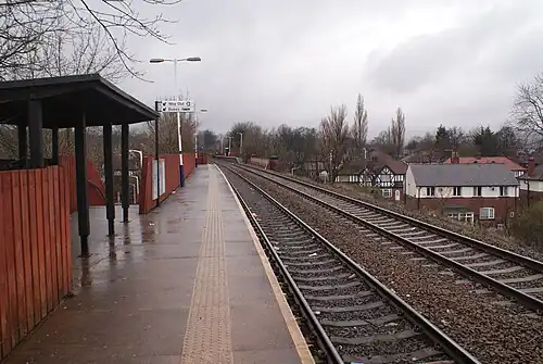 The station opened by British Rail on 29 September 1986.[1] It is located in the middle of a housing estate and forms an unofficial footpath between the two sides.[2] In March 2008 work began on a new car park for the station.[3]