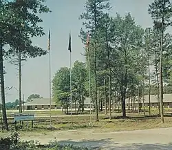 The Hammond School campus in 1966. Like many segregation academies, the school flew the Confederate flag.[4][13]