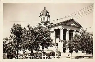 The Hampshire County Courthouse is a Neoclassical edifice in the center of downtown Romney, county seat of Hampshire County, West Virginia. The present building was constructed in 1922 to replace the previous 1833 Neoclassical courthouse that had been destroyed by fire in 1921. The original bell from the 1833 courthouse hangs in the domed bell tower.[3][4]