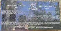 Hanging Rock is a gold mining village and also rock face on the Northern Tablelands, New South Wales, Australia. This former gold mining town is situated about 10 km south east of Nundle. The village is part of the Tamworth Regional Council district and Parry County. Hanging Rock's geographical coordinates are 31° 29′ 0″ South, 151° 12′ 0″ East and the elevation is about 1100 m. Due to the high altitude of the village, Hanging Rock and the surrounding mountains can occasionally receive a snow fall on the coldest of winter days. At the 2021 census, Hanging Rock had a population of 98.[1]
