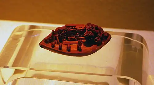 The museum is divided into 6 exhibition areas, it contains different artifacts such as sculptures, ceramics, and metal crafts, among the exhibits are a Xihu silk umbrella and Fuyang bamboo paper.[1] The museum contains works by Chinese artists such as paintings by Tang Di,[6] a copper decorative screen by Shaoxing artist Zhu Bingren.[7] The museum also contains works by Hangzhou artist Chen Shuiqin[8] and Qingtian artist Wu Songjiang.[9] In addition, the museum contains oil paper parasols from the southeastern part of Fujian Province dating back to the 21st century.[10] In September 2012, an exhibition called "Porcelain in the Universe-Large-scale Art and Life Ceramic Exhibition" was organized, which included works of more than 50 arts and crafts masters from different municipalities and provinces of China.[11] The museum contains Qingtian Stone Carvings, in 2015, activities related to these stone carvings were held in the museum.[12] In April 2018, the museum collaborated with Hong Kong's Liang Yi Museum to hold an exhibition called "Pandora's Box", which displays historical artifacts from Europe, and the Hangzhou Arts and Crafts Museum organized interactive activities around the jewelry exhibits.[13] In March 2018, the museum launched an exhibition called "Cutting the first branch of the Spring Breeze-Scissors Culture Exhibition", in which scissors from China were displayed, moreover, part of the exhibition came from Shen Minghua's collection.[14] In May 2019, the museum launched an exhibition about Chinese ceramics, this exhibition contained more than 120 works from famous ceramic production areas, this exhibition was in collaboration with Hong Kong Chinese Ceramic Sculpture Research Association.[15] In December 2019, the museum presented an exhibition with bronze sculptures by Zhu Junmin, the exhibition ceremony was attended by Wang Yingxiang, Liu Xiaoping, Zhao Jianzhong and Feng Renqiang, the exhibition was supported by Hangzhou Civil Artists Association and Hangzhou Arts & Crafts Industry Association.[16]