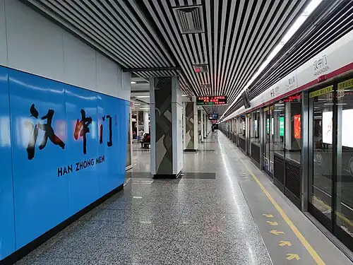 Hanzhongmen station (simplified Chinese: 汉中门站; traditional Chinese: 漢中門站; pinyin: Hànzhōngmén Zhàn), is a station of Line 2 of the Nanjing Metro. It started operations on 28 May 2010 along with the rest of Line 2.[1][2]