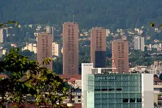 The Hardau Residential Complex (German: Hardau Hochhaus or Wohnsiedlung Hardau II) is a high-rise residential complex in Zürich, Switzerland.[2] Built between 1976 and 1978, the complex consists of four towers, with the tallest one (Tower 1 or Bullingerstrasse 73) standing at 95.4 m (313 ft) tall with 33 floors which is the second tallest building in Zürich and the 13th tallest building in Switzerland.[3]