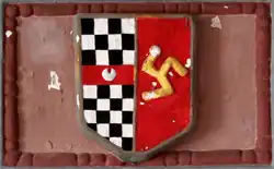 Anthony's son, Baldwin Acland (1593–1659) married Elizabeth Tremayne at Lamerton in 1615, a year after his father's death.[4] In the "Inner Room", next to the Great Hall at Hawkridge Barton survives a plaster overmantel showing the arms of Acland impaling Tremayne, representing this marriage.[3][b] Elizabeth was the fifth daughter of Arthur Tremayne (1553–1635) of Collacombe in the parish of Lamerton, Devon, and his wife Mary,[21] a daughter of Admiral Sir Richard Grenville (1542–1591), the famous captain of the Revenge.