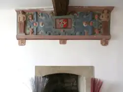 - ^ The overmantel consists of "a strapwork cartouche with small heads probably of Cain and Abel to each side flanked by foliage and figures of Adam and Eve, with the serpent above".[20]